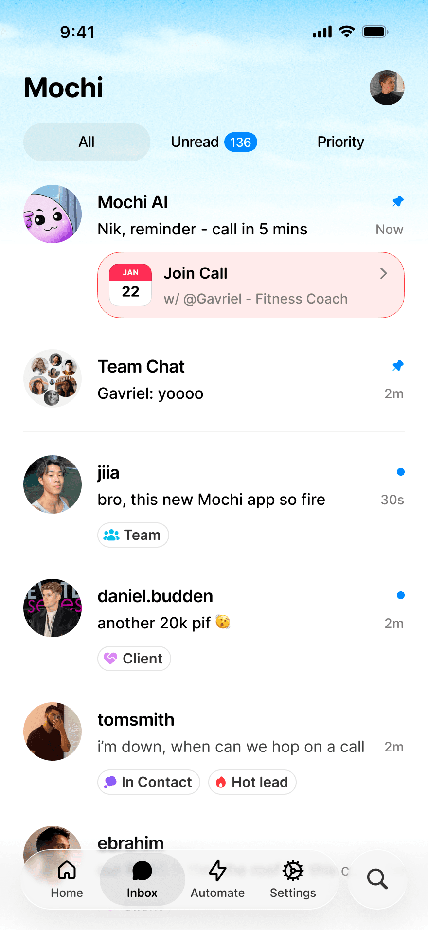 Real-time push notifications and the full Mochi experience built natively for iOS.