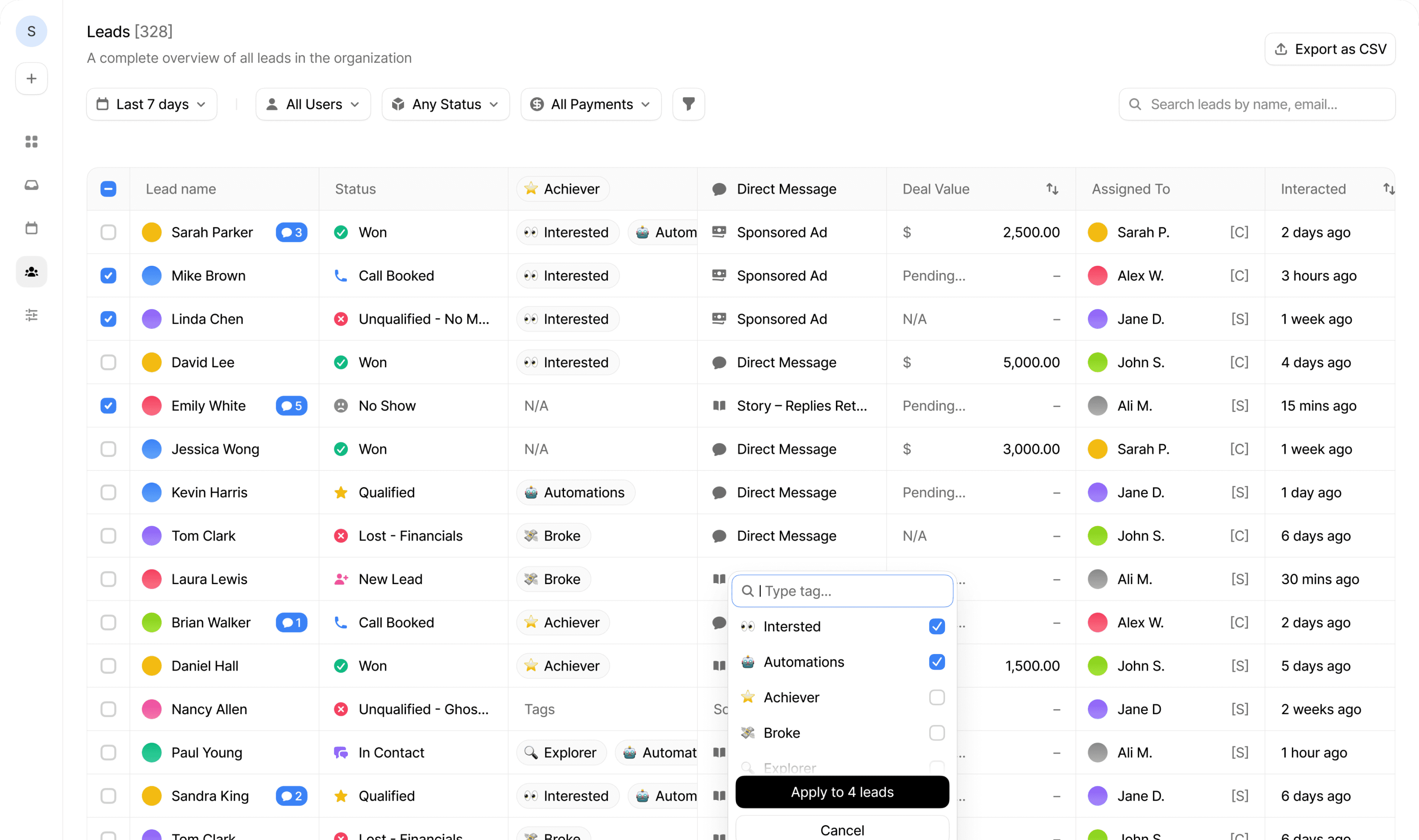 Route your lowest-priority leads — the ones your setters ignore or half-follow-up on — to Mochi. Let it compete head-to-head with your human team on the segment with the least to lose.